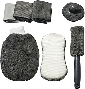 Includes shampoo, microfiber towels, and other cleaning supplies.